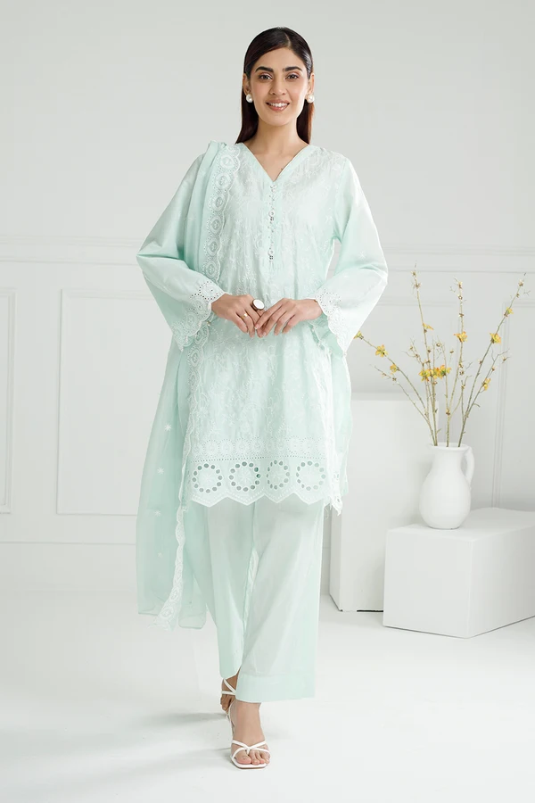 Work Detail: Schiffli Embroidered Shirt and Dupatta