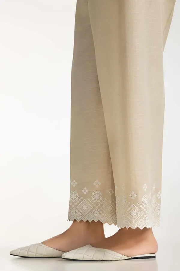 Step into timeless elegance with our Beige Khaddar Embroidered Trouser. Crafted from soft, breathable Khaddar fabric, this straight pant is enhanced with delicate embroidery, offering a perfect balance of style and comfort. Whether you’re dressing up for a special occasion or keeping it chic for everyday wear, this versatile piece is your go-to for effortless sophistication.