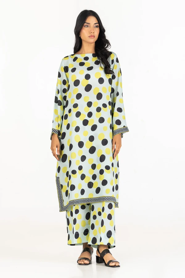 Details: Printed Co-ord set with a Round-Neckline and detailing on the Sleeves and Hem